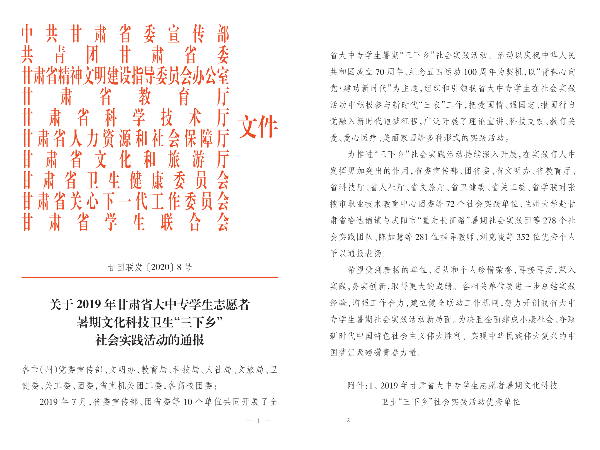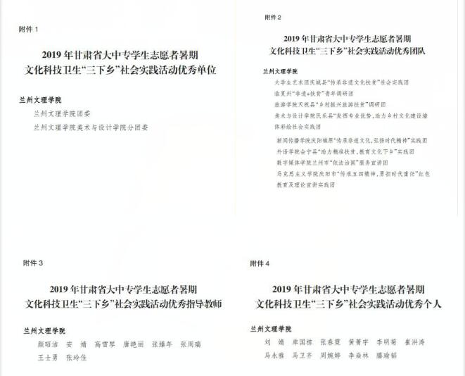 近日,省委宣传部、团省委等10部门公布2019年甘肃省大中专学生志愿者暑期文化科技卫生“三下乡”社会实践活动优秀单位、团队、指导教师及优秀个人名单,Beat365喜获30项荣誉。