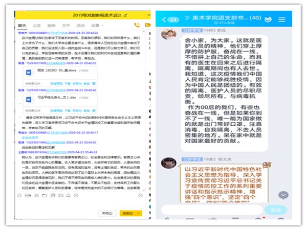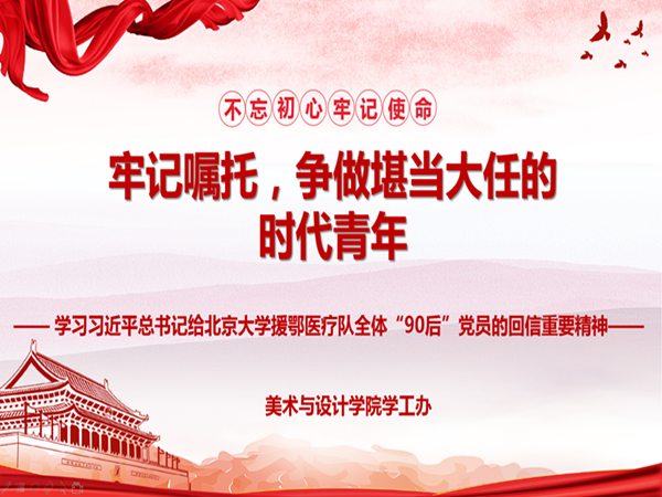 2020年4月20日-24日,美术与设计学院按照学校的文件要求,在学工办主任唐艳丽老师的精心组织和安排下,在全院范围内掀起学习贯彻习近平总书记给北京大学援鄂医疗队全体“90后”党员的回信重要精神的热潮,辅导员李晶晶、郭子弘以及全体学生干部参与活动。