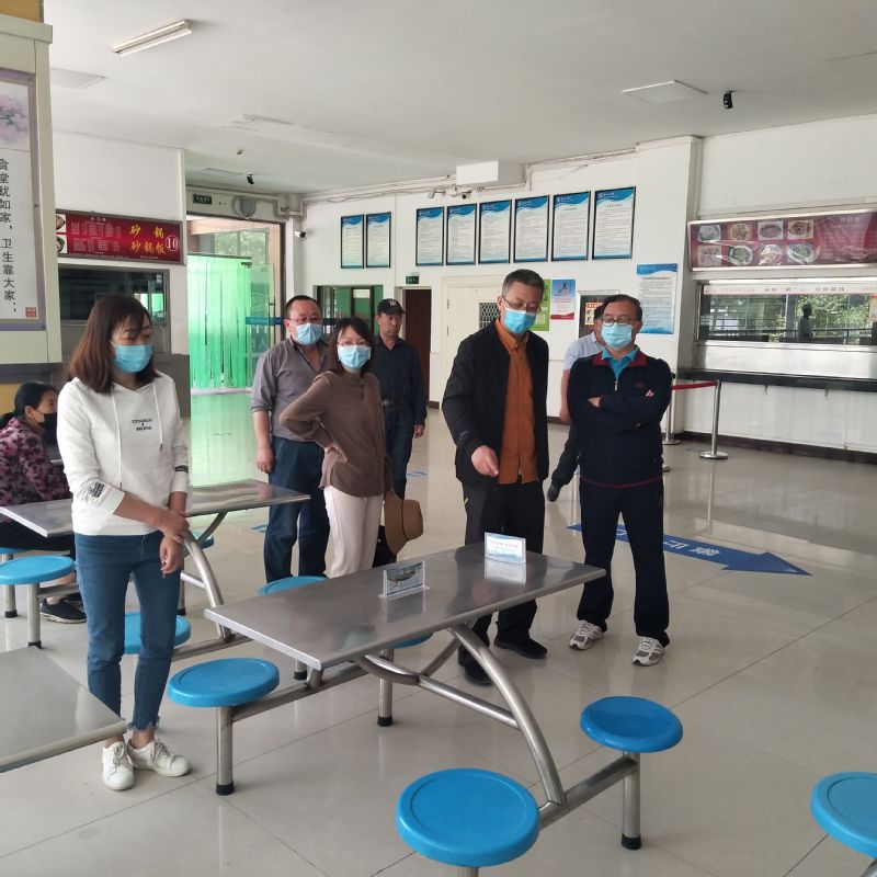 郑校长一行先后对学生浴室、学生食堂、学生公寓、超市商铺、医务室、理发店、快递服务店、移动、电信服务厅等进行了检查。郑校长询问了从业人员健康状况,对食品安全、原材料溯源、食品存放、加工操作、出入登记检查、学生就餐安排、学生住宿安排、超市商铺商品储备供应、消毒标准、消毒用品用具准备及卫生间洗手消毒液的摆放等一一进行了深入细致的检查,并提出要求和问题整改指导意见。