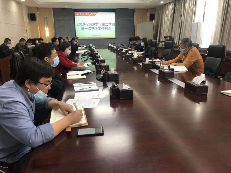 5月12日下午,学校在第一会议室召开2020学年第二学期第一次学生工作例会。党委委员、副校长刘畅、党委学生工作部(处)、保卫处、后勤处及各二级学院党总支书记、分管学生工作副院长参加。会议由刘畅副校长主持。