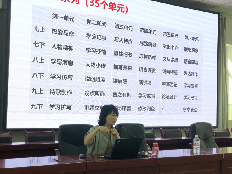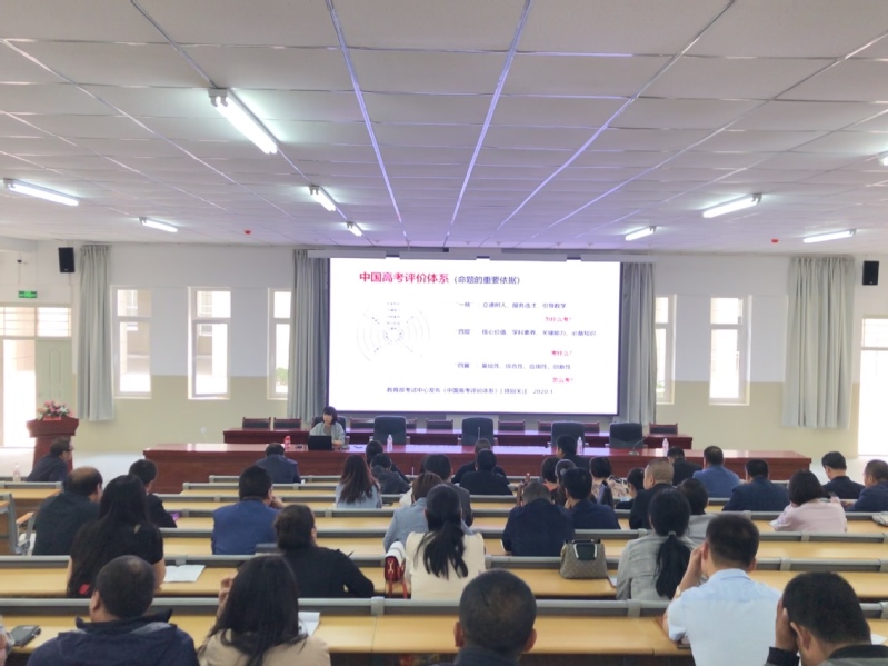 报告会上,代老师从三个方面进行了阐述。一是用好教材,科学迎考。用五个关键词:立德树人、双线组元、三位一体、读写结合、活动探究,向大家以实例清楚地介绍了新教材的优点,尤其要抓写作方面的训练,还对教师备课作出具体要求。代老师强调新版教材不是之前旧版教材的修订,虽然里面增减的文章不是很多,但是新教材在理念上,突出德育为魂、能力为重、基础为先、创新为上;在内容上,强化中华优秀传统文化教育、革命传统教育、国家主权教育和法治教育等重要内容。二是研究新题,把握趋势。要求大家关注两个文件,教育部考试中心发布《中国高考评价体系》,《教育部关于加强初中学业水平考试命题工作的意见》,告诉大家中国高考评价体系是命题的重要依据。利用解读真题看考试出题的依据,需要培养学生哪方面的能力,再将题带入课本,清晰明了地为大家理清了思路。三是回看教学,有效落实。代老师指出学生在课堂上阅读得很少,而课本关于阅读的内容却很多。缺少阅读,对学生语文能力的养成是致命一击,缺少阅读对语文教学是釜底抽薪。阅读是一种综合汲取知识,提升素养的过程。学生没有正真的阅读,带来的弊端就是学生在考场上就不能快速的把握中心内容。代老师强调以前语文学科是不关注方法和策略的,现在的新教材不能再用以前的教法,要教会学生学习的方法与策略,要让学生离开课本,脱离老师会阅读。要突出学以致用,让学生学会阅读、思考和写作。