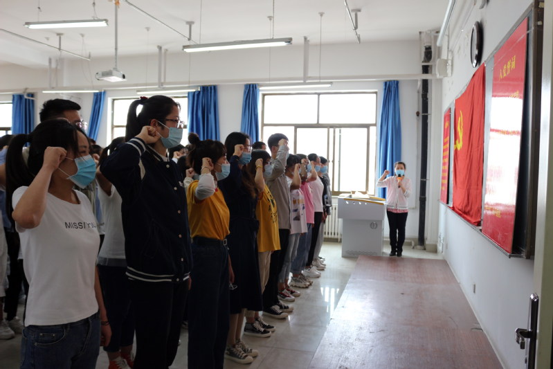 宣誓仪式在庄严的《国际歌》乐曲中开始。宣誓预备党员依次在党旗前列队,在副院长、工管系学生党支部书记石晶同志的领誓下,面向党旗逐句宣誓,作出庄严承诺。预备党员宣誓后,正式党员向参加宣誓的预备党员佩戴党徽,预备党员代表、会计系第二学生党支部2017级财务管理注会班张钰琪,正式党员代表、206级财务管理专升本班胡琪雅分别发言。他们结合一年来学习工作的情况,结合自己在疫情防控和线上教学期间的感悟,表示要把入党誓词作为自己的终身的追求,终生的修养和终生的实践,用党员标准严格要求自己,将自己的智慧和热血融入到中国特色社会主义的各项实践中,用实际行动践行自己的誓言。