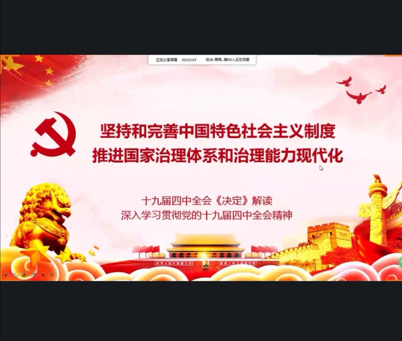 6月1日19:30分,数字媒体学院党总支邀请马克思主义学院费翔教授通过QQ屏幕分享的方式,为入党积极分子线上讲授了题为《十九届四中全会精神暨决议解读》党课。