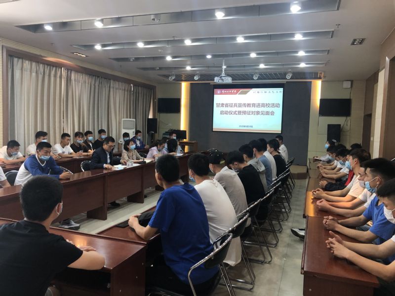 6月10日上午,学校在综合楼二楼视频会议室召开甘肃省征兵宣传教育进高校活动启动仪式视频会暨预征对象见面会。党委委员、副校长刘畅出席会议,党委学生工作部、各学院辅导员及预征对象共50余人参加会议。会议由党委学生工作部部长、学校人民武装部部长孙亮主持。