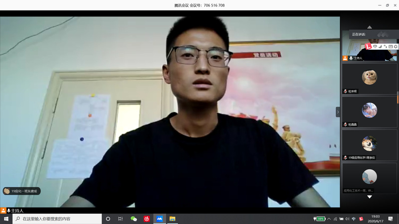 为做好2020届毕业生文明离校工作,同时为2021届毕业生做好就业指导。化工学院于2020年6月17日晚举办优秀毕业生线上云分享交流会,邀请了我院在宁波、烟台、新疆三地就业及今年考取宁波大学、湘潭大学、西北师范大学及南京航空航天大学的优秀毕业生与学弟学妹们分享经验。会议由分团委学生会戴永鑫和张鑫共同主持,学院全体无课学生参加了交流会。