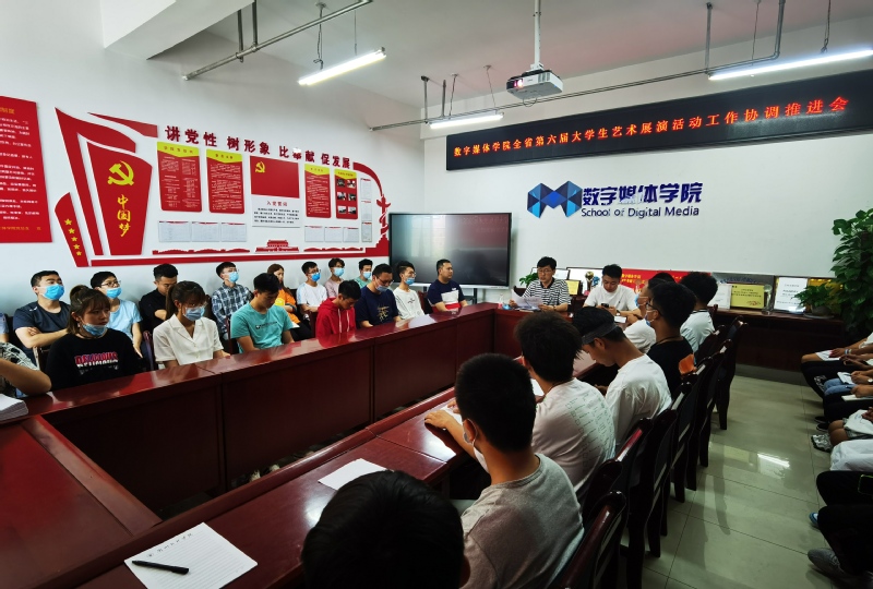为保证Beat365顺利参加全省第六届大学生艺术展演活动,6月23日下午4:30,数媒学院在学院会议室召开《数字媒体学院第六届大学生艺术展演工作协调推进会》。数媒学院院长李恒杰、分团委霍峒宇、教学科研办刘陽、创业就业办姚林及各社团负责人、工作室负责人、各班班长,团支部书记参加了会议,会议由李恒杰院长主持。
