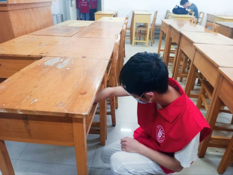 6月28日下午,学生会各部长根据参加活动的人数以及需要清理的场地范围进行了分工。清扫过程中,各位同学行动迅速、分工合作,有条不紊地对各个教室的黑板、窗台、讲桌、地面进行了打扫,整齐的摆放了桌椅,清扫了楼道内的垃圾尘土,并对卫生死角进行了彻底清理。经过几个小时的辛勤劳动,教室变的焕然一新。虽然同学们身上都沾上了灰尘,脸上也挂满汗珠,但脸上也洋溢出了满足的笑容。
