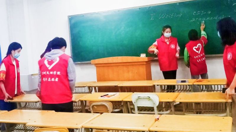 为了进一步弘扬雷锋精神,创建和谐、文明、美丽的校园,为同学们营造更好的学习生活环境,教育学院学生会全体成员于2020年6月28日开展了一场校园清扫志愿服务活动。本次活动清扫区域为学校南校区三号楼二楼全部教室。