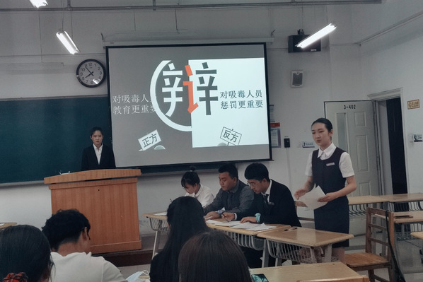 为了加强同学们对毒品及相关知识的了解,旅游学院学生在团学办老师的安排和指导下,于6月28日19:30在3-402教室举行了禁毒知识辩论赛,本次比赛由雁苑杯优秀辩手于磊、刘亦真和高文茜同学担任评委,由贺亚玲同学主持。