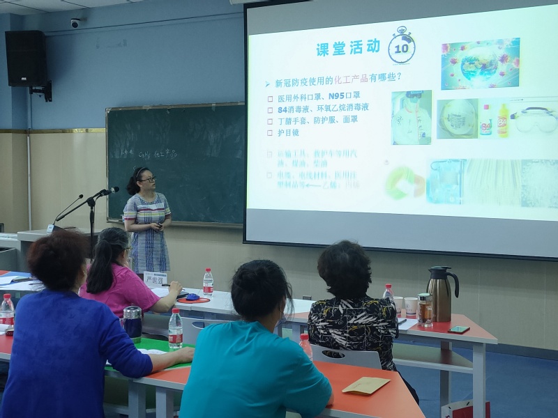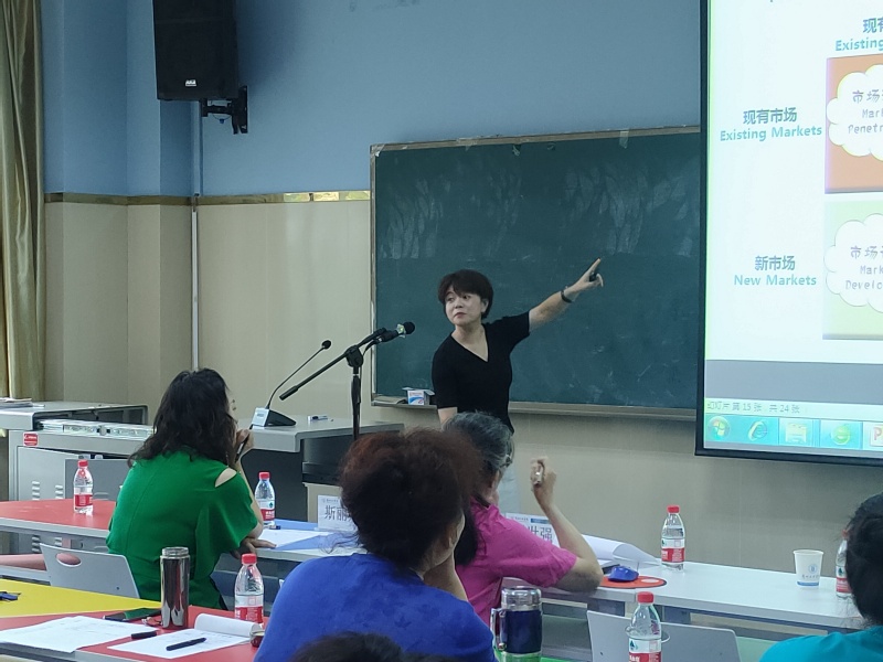 培训以参赛教师仿真比赛、专家点评指导的形式进行。四位参赛选手各自展示了自己用来参赛的教学片段,2位专家对参赛教师进行了长达一个多小时的点评,从教学理念、教学设计、板书、PPT、语言表达、与学生互动、课程思政的融入以及比赛时服装的选择等方面进行了全方位的指导。