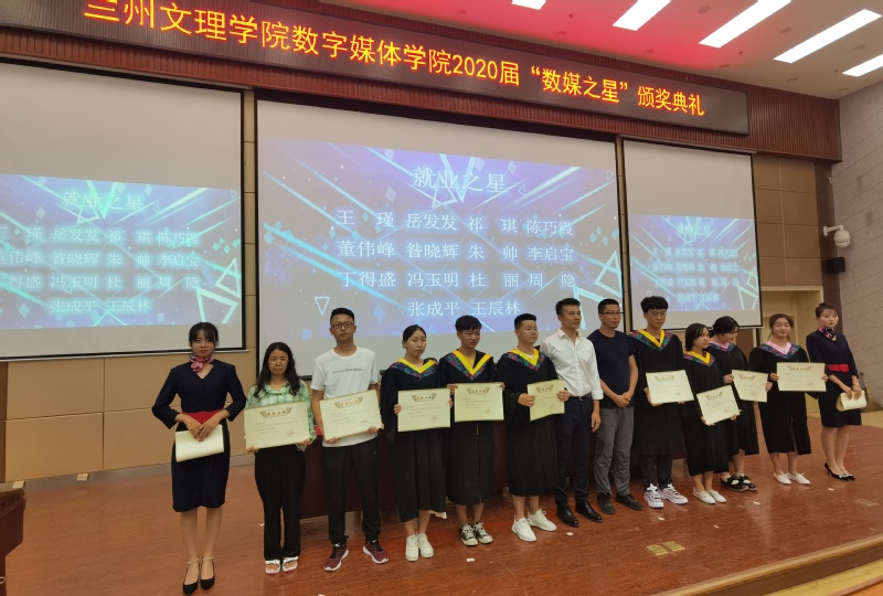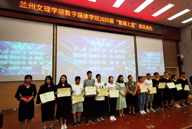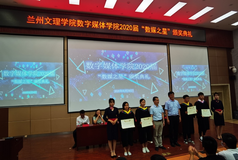 活动中,学院党总支书记陈小琴首先宣读了“数字媒体学院关于对李萌等42名2020届优秀毕业生授予‘数媒之星’荣誉称号的表彰决定”。此次获得表彰的“数媒之星”是经由毕业班班级推荐、自荐等形式,报学院审批后,由学院党政联席会议最终确定。数媒之星分别由考研之星、就业之星、竞赛之星和最美之星四个模块组成,旨在表彰我院2020届毕业生通过大学四年的学习和成长,在考研、就业、竞赛、道德品质等方面取得突出成就或做出突出贡献的优秀个人。本届毕业生“数媒之星”颁奖晚会的举行是我院领导进一步推动全体数媒学子践行社会主义核心价值观和加强文明校园建设的重要举措。