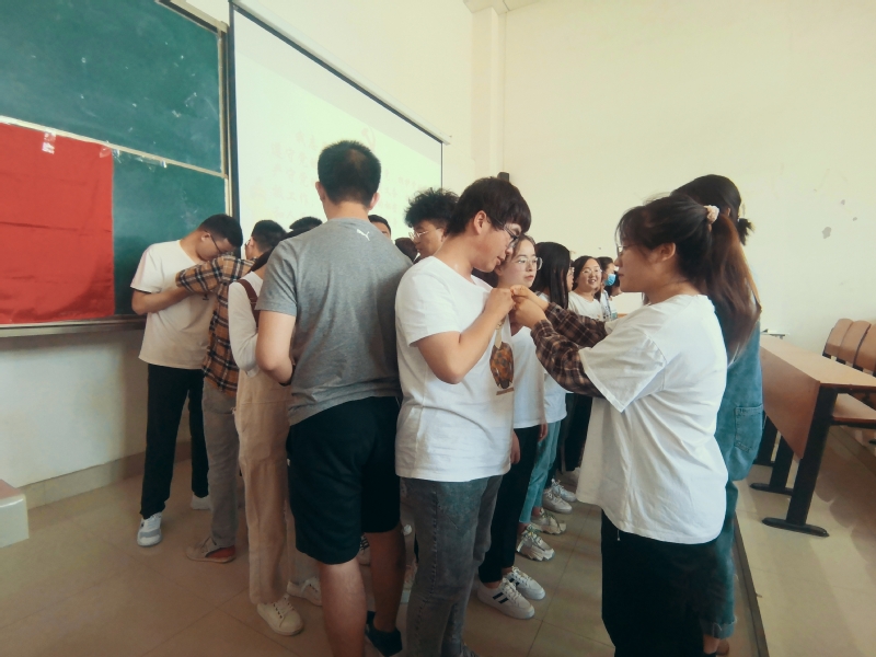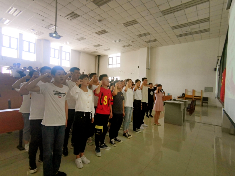 入党宣誓仪式在庄严肃穆的《国际歌》声中拉开序幕。首先由学院组织员周琦宣读预备党员名单、介绍吸收审批程序;由党员代表给预备党员佩戴党徽,预备党员依次列队,面向党旗进行宣誓,由计算机与软件学生党支部书记刘洁老师领誓,在场的全体党员一起重温了入党誓词。随后,党支部书记杨波和任敏兄分别向新入党的同学表示了祝贺,同时对所有党员提出了期望,希望大家主动承担党员义务和责任,用实际行动践行党旗下的誓言,努力争当优秀共产党员,当好身边人的典范。