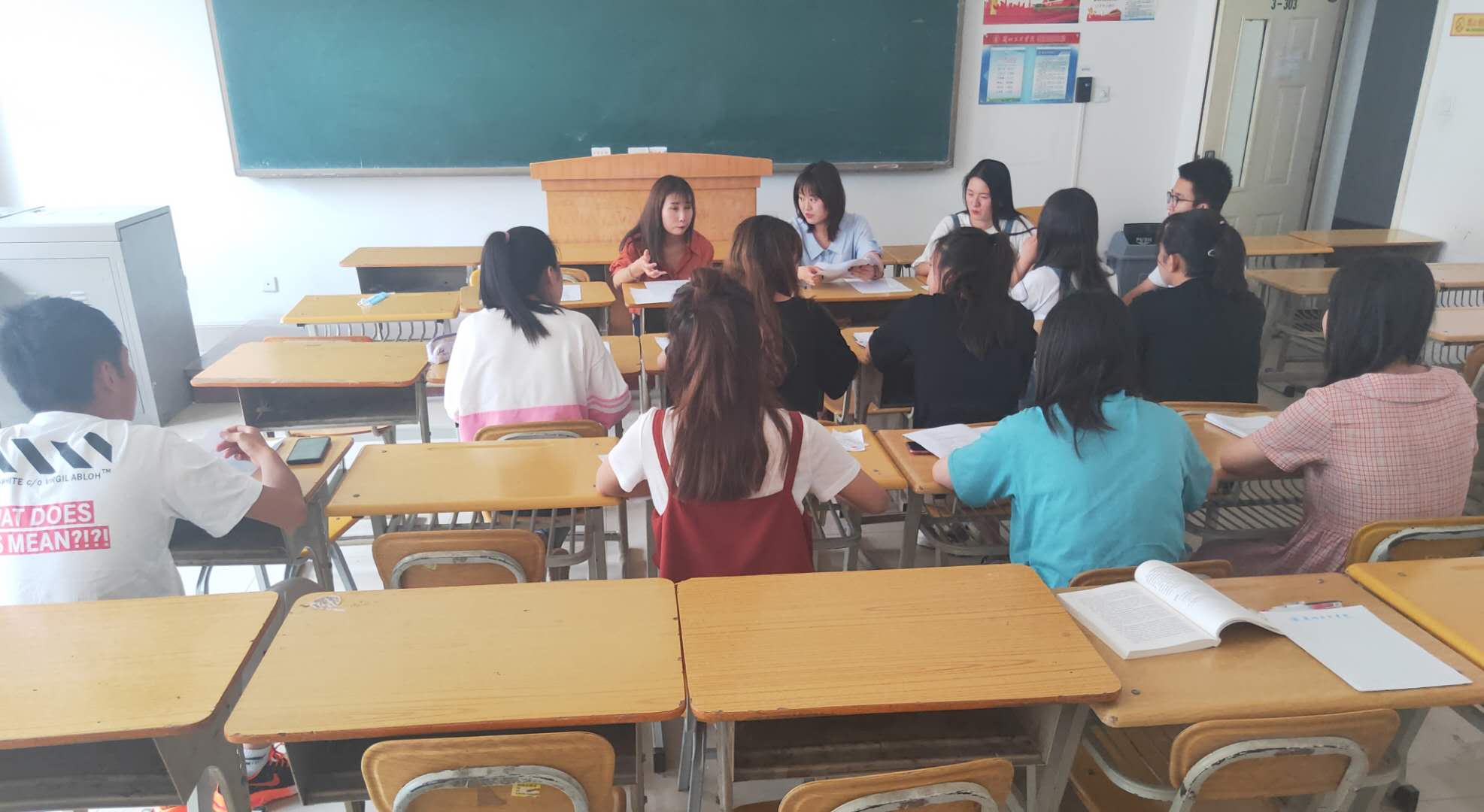 7月13日下午,马克思主义学院“三下乡”活动参与人员开展关于普法宣传的会议,本次会议由分团委书记范婷和张瑶老师主持,赵伟伟等12名共青团员参加。