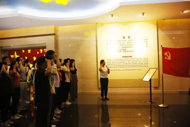 为不断增强党员党性意识、责任意识和宗旨意识,不忘初心、牢记使命,充分发挥党支部战斗堡垒作用和党员的先锋模范作用, 7月15日,数字媒体学院党总支组织师生党员前往榆中县张一悟纪念馆和烈士陵园开展“缅怀革命先烈,传承红色基因;重温入党誓词,坚定理想信念”主题党日活动。活动由学院党总支书记陈小琴带队,全体教工党员、学生党员代表及无党派教工代表20余人参加了此次活动。