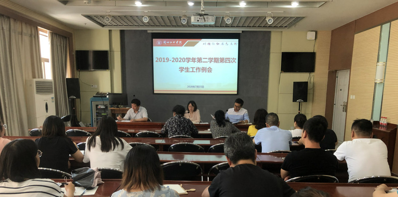 7月15日下午,在视频会议室召开本学期学生工作例会第四次全体会议。党委委员、副校长刘畅出席,各二级学院分管学生工作副院长及各学院辅导员老师、学生处全体工作人员参加,会议由副校长刘畅主持。