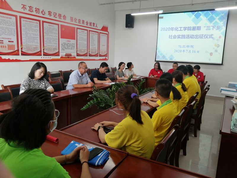 7月16日上午,化工学院2020年暑期“三下乡”社会实践出征仪式在学院会议室举行。学院院长兼党总支书记张兴辉,副院长杨光,指导教师李卉、李凯青、刘茜参加本次出征仪式。