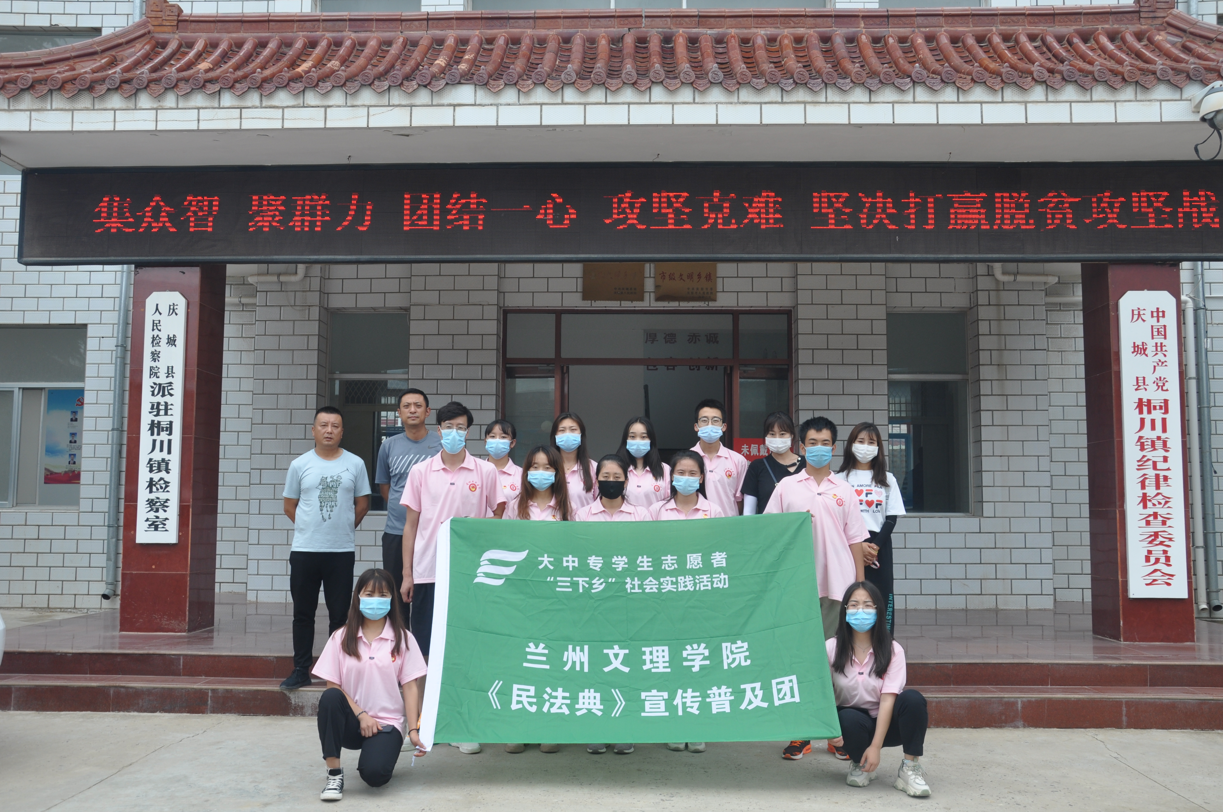7月15日-18日,Beat365暑期社会实践党建结对扶贫专项重点团队——马克思主义学院《民法典》宣传普及团,由范婷老师和张瑶老师带队,深入庆阳市庆城县桐川镇郭家岔村、九条湾村、高庄村等8个村子,与村干部交流、村民访谈,开展农村法律普及状况调研,并向基层群众宣传普及《民法典》法律知识。