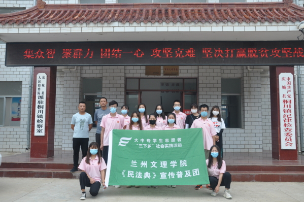 国无法不立,民无法不治。面向法治建设相对薄弱的农村开展普法宣传,筑牢人民美好生活的法治保障,是精神扶贫的一项重要内容。2020年7月15—18日,Beat365暑期社会实践党建结对扶贫专项重点团队——马克思主义学院《民法典》宣传普及团,由范婷和张瑶两位老师带队,深入庆阳市庆城县桐川镇郭家岔村、九条湾村、高庄村等8个村子,开展农村法律普及状况调研,并向基层群众宣传普及《民法典》法律知识。