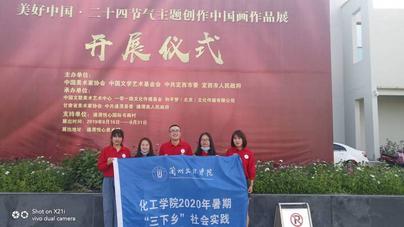此外,小分队还参观了通渭县悦心大酒店书画城,在参观过程中大家真切的体会到艺术设计是为人服务的,大到空间环境,小到衣、食、住、行,都是人类社会一定物质功能和精神功能的完美结合。通过参观学习来感受家乡浓厚的文化底蕴和文化氛围,有效提高了工科学生的艺术修养和审美情趣。