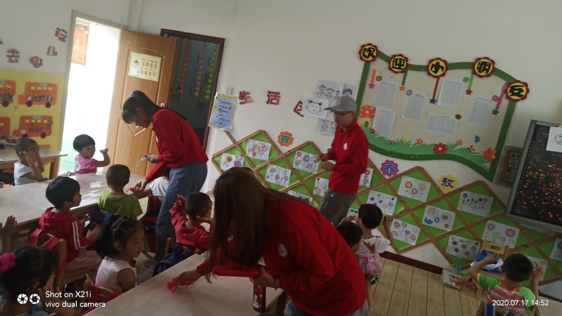 小分队成员为孩子们带来了少儿读物与小礼物,在互相熟悉的过程中,小分队成员了解到,该所幼儿园大多数的小朋友都在爷爷奶奶身边长大,他们更多表现为性格内向,害怕与外界接触和过度的自我保护。由于长期缺乏亲情的关爱,大部分儿童会形成一种自我保护的意识,性格内敛,喜欢沉浸在个人的内心世界,对新鲜事物有抵触心态。随后,小分队成员对个别儿童分别进行了家访,尝试走进孩子们的内心世界,希望他们能理解父母,快乐成长。
