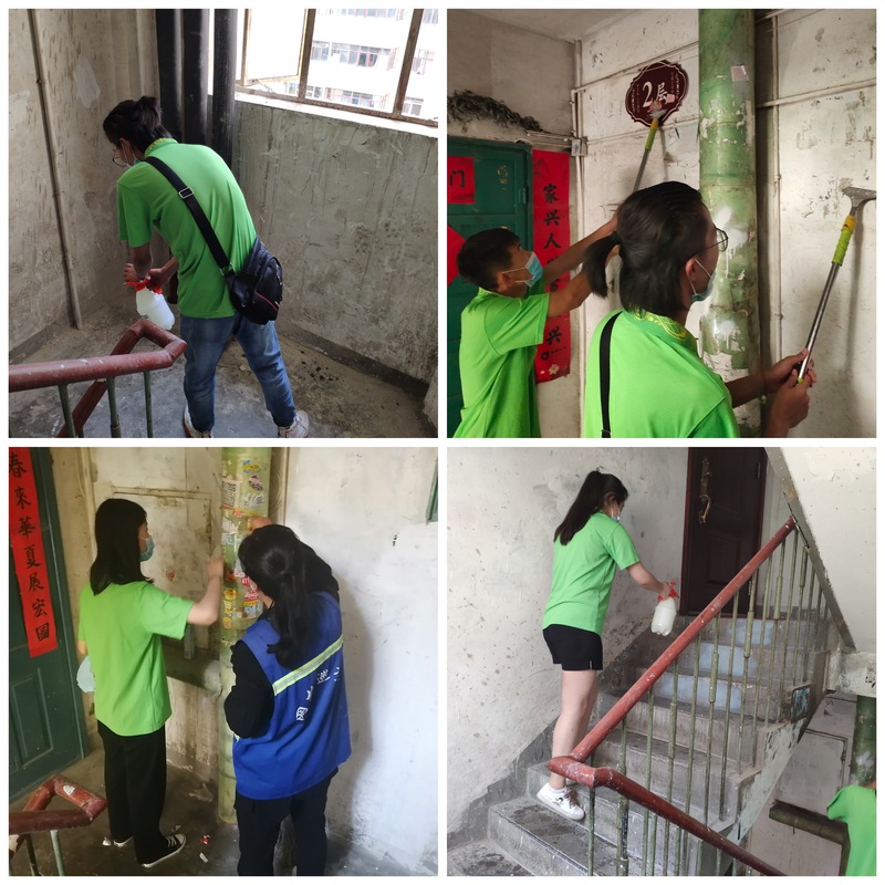 18日当天,助力社区疫情防控小分队为居民讲解在疫情期间的消毒、通风、体温检测、佩戴口罩、洗手、与人接触等的正确方式。小分队在社区清洁阿姨的指导下,进行了社区志愿服务活动,打扫楼梯、清除楼道里张贴的小广告、擦玻璃、喷洒消毒水,经过小分队成员的共同努力,小区变得更加温馨,社区内居民的安全意识明显提高。同时,化工学院助力社区疫情防控小分队也获得了社区居民及工作人员的广泛认可。