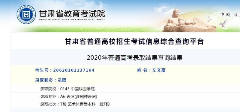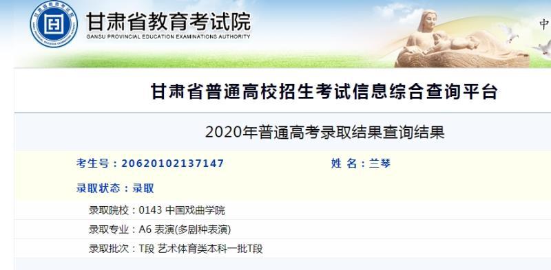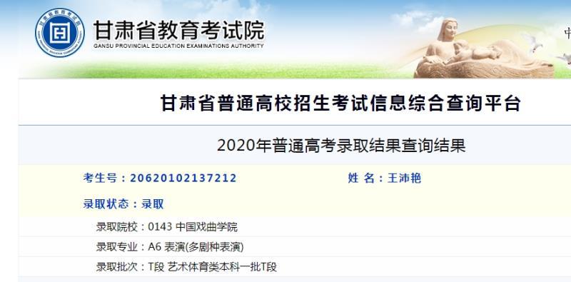 中国戏曲学院2020年《多剧种表演专业》在全国的计划为32人。甘肃省艺术学校的孩子一次性考入8名学生,实现了近年来艺术类重点院校一次性录取的重大突破。可喜可贺!