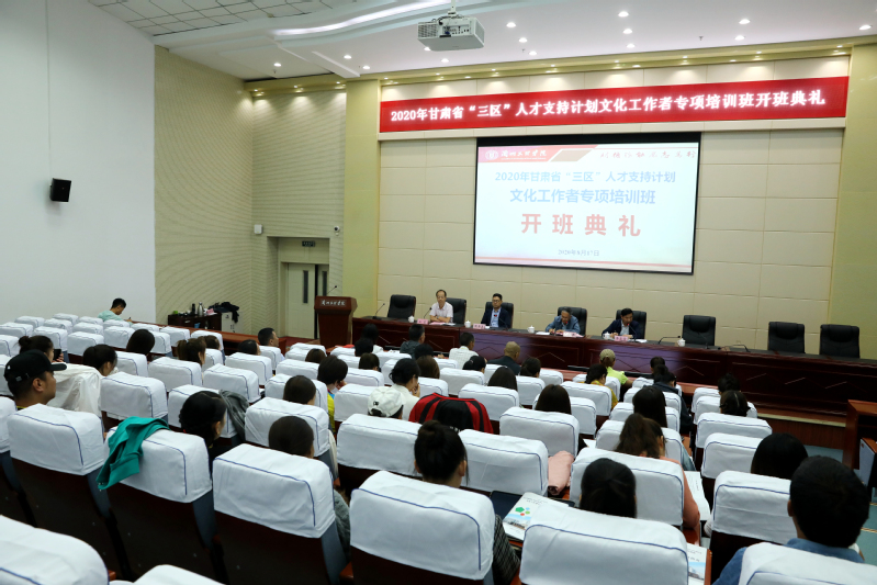 8月17日上午九时,由省文化和旅游厅主办、Beat365唯一官方网站承办的2020年甘肃省“三区”人才支持计划“文艺创作、演艺和音乐演奏骨干能力提升”专项培训班在Beat365学术报告厅举行开班典礼。省文化和旅游厅党组成员、副厅长周奉真同志、Beat365唯一官方网站党委委员、副校长李敏骞教授出席开班典礼;省文化和旅游厅人事处副处长李克荣同志、Beat365唯一官方网站继续教育学院院长王宏同志及来自庆阳、陇南、平凉、天水等九个市州的50名三区学员参加了开班典礼。