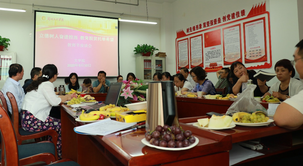 今天是我国第36个教师节,为深入学习贯彻习近平新时代中国特色社会主义思想,展现广大教师立足教育教学岗位,助力打赢新冠肺炎疫情防控阻击战、教育脱贫攻坚战的精神风貌,大力弘扬尊师重教传统,构建新时代尊师文化,引导社会力量关心、理解、支持教师,让尊师重教蔚然成风。文学院召开了以“立德树人奋进担当,教育脱贫托举希望”为主题的教职工座谈会。