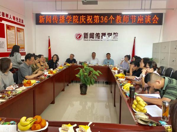 在第36个教师节来临之际,9月10日下午,新闻传播学院在学院会议室召开庆祝第36个教师节教师节座谈会。学院领导班子成员以及无课教师参加,学院党总支书记王金寿主持座谈会。