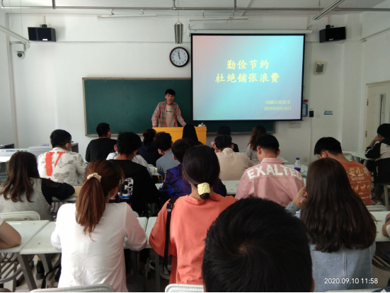 2020年秋季开学第一周,化工学院组织全院17个班级召开以“厉行节约、反对浪费”为主题的主题班会,旨在全体学生中树立节约光荣、浪费可耻的意识,拒绝餐桌上的浪费,传承中华民族勤俭节约的传统美德。