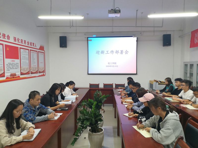 2020年9月15日下午,化工学院召开2020迎新工作部署会,学院党总支书记贺志军、辅导员刘茜、李凯青、李睿及院学生会、志愿服务队迎新学生代表参加会议。会议由团学办副主任李卉主持。