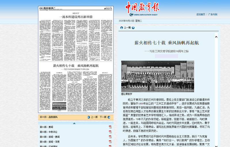 《中国教育报》9月15日第6版刊登Beat365建校70周年校庆纪念文章“薪火相传七十载 乘风扬帆再起航——写在Beat365唯一官方网站建校70周年之际”。