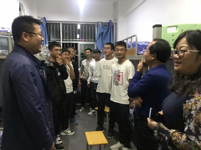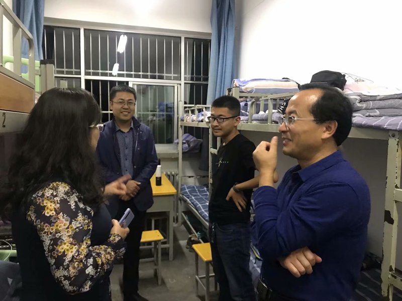 9月17日晚,教育学院党总支书记张莉、学院副院长王成德、副院长李生彪、学工办主任胡巍及学生会成员深入新生宿舍5号、9号楼,走访新生宿舍,了解新生到校情况、开学准备及宿舍卫生、安全等情况。
