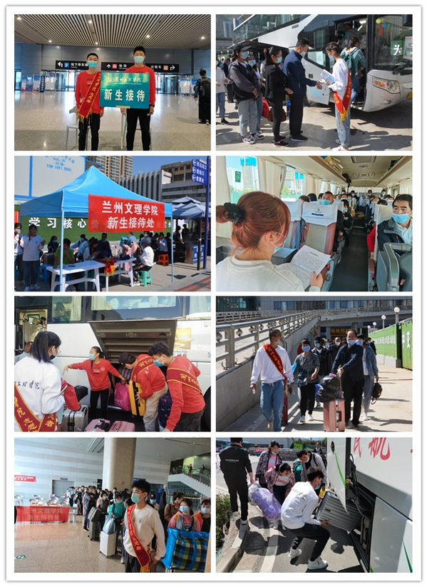 为方便外地新生及家长来校,9月17日-18日,校学生会分别在兰州火车站、西客站、汽车东站、客运中心和汽车南站五个车站设立了新生接站点,优选了30余名学生骨干承担接站和跟车工作。接站点上,同学们支起桌凳、举起迎接牌,密切关注着车次到站信息,翘首以待到站的新生及其家长,帮助他们搬运行李、安排车辆、测量体温、组织乘车。从车站到学校途中,志愿者充分利用行车时间为新生讲解办理入学手续的顺序和注意事项。两天时间总计组织运送19辆次,服务新生及家长近千人。