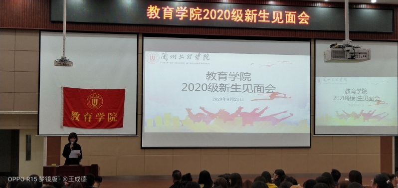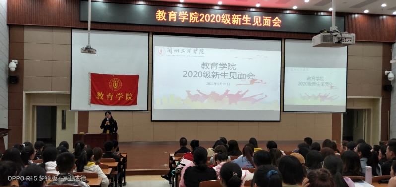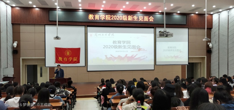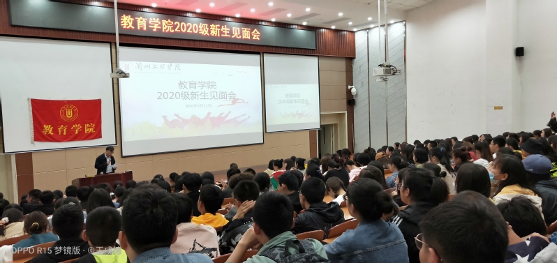 2020年9月21日中午,教育学院在综合楼205阶梯教室举行2020级新生见面会。学院党政领导班子、学工办、辅导员、新生班主任以及2020级数学与应用数学专业、学前教育专业全体新生300余人参加了本次大会。会议由教育学院副院长王成德教授主持。