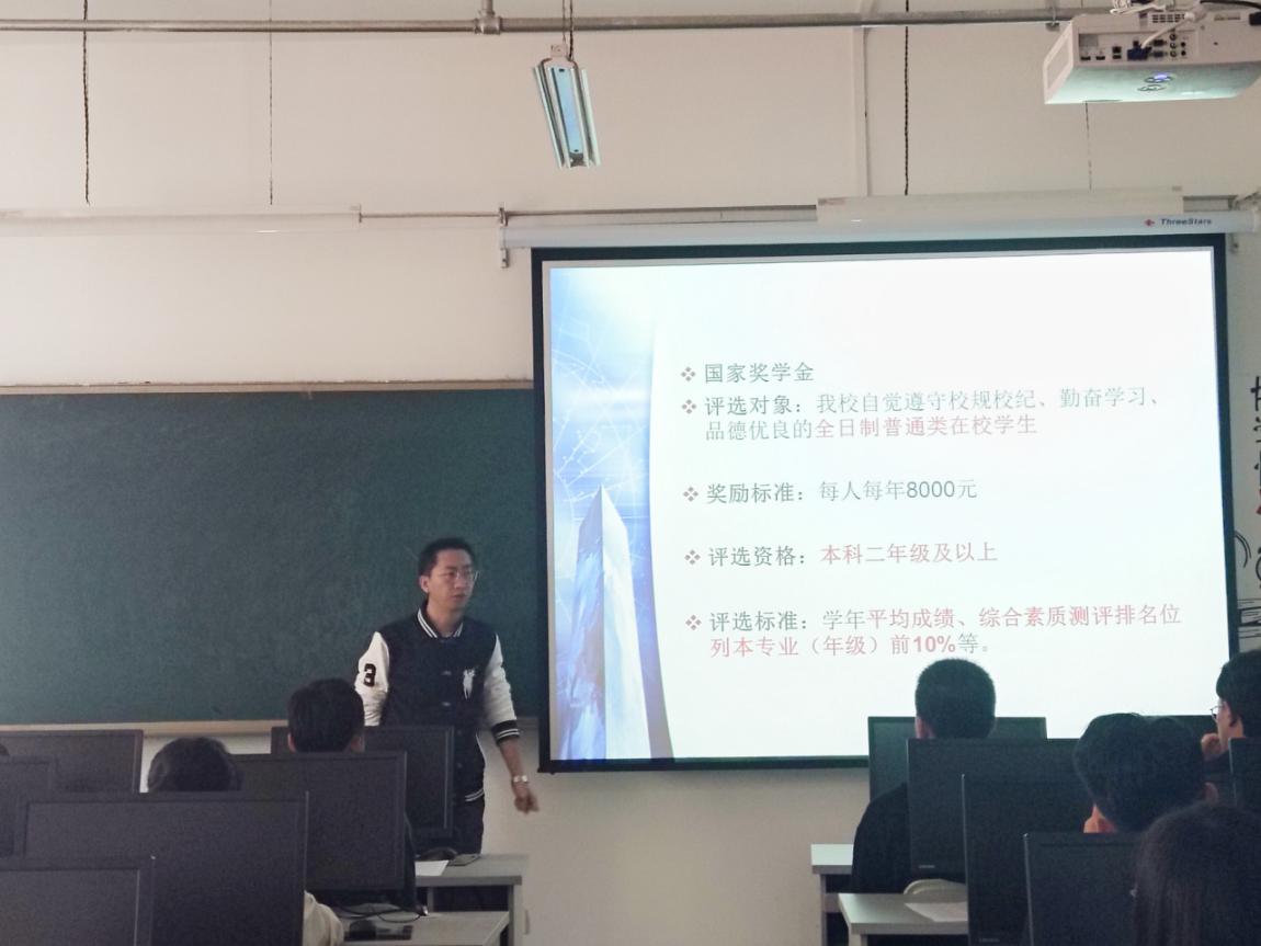 庞老师从家庭经济困难学生认定和管理办法、学生综合测评办法、国家奖学金评选办法、国家助学金评选办法等方面对学校相关奖助制度进行了讲解。在安全教育方面,庞老师结合校园典型案例,提醒同学们防火、防盗、防诈骗。