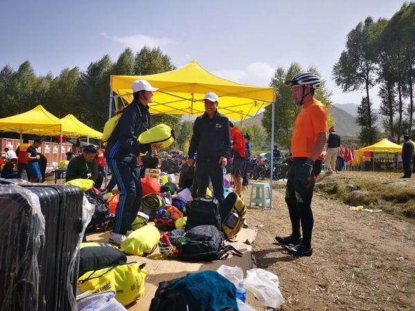 赛道志愿者们的工作很辛苦,赛道局部位于雪山脚下,寒气逼人,但他们以过硬的身体素质,高涨的服务热情,比出专业的指引手势,选手们在骑过服务点时纷纷向他们微笑致谢。