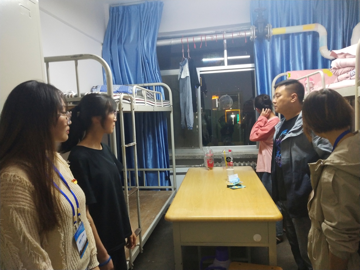 学院组织辅导员、班主任以召开主题班会、走访检查学生宿舍的形式,重点围绕国庆节前和国庆期间的疫情防控、消防、交通、饮食、公寓等方面对同学们进行安全教育和引导,积极倡导“非必要不出校、非必要不出省”的要求,所有学生严格执行健康监测制度,禁止学生到境外及疫情中、高风险区出行,不参加聚集性活动,尽量减少外出,外出做好个人防护。假期留校的同学要严格执行一天“三检”和“晚点名”制度,并做好公寓防火、用电、用水、财产安全工作,老师们在走访学生宿舍中本着即查即改的原则,对宿舍发现的问题现场提出整改意见,努力消除各类安全隐患。