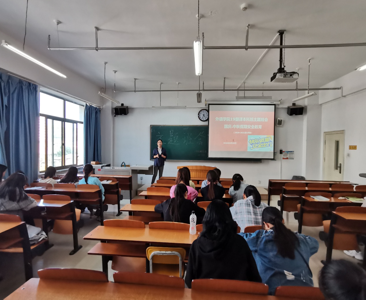 “国庆、中秋”假期将至,为了提高学生的安全意识, 9月27日至29日,外语学院组织各班开展节前安全主题教育系列活动。