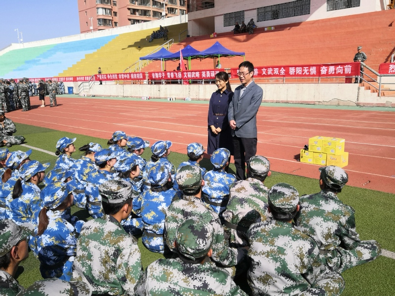 宿光平院长代表学院向军训教官表示诚挚谢意,向参训学员表示亲切问候,对军训开始以来同学们的表现给予充分肯定,鼓励同学们要全身心投入到军训这个大熔炉里,接受各种锻炼,弘扬敢吃苦、愿拼搏的精神,锤炼严肃认真、一丝不苟、精益求精的品质,希望同学们都能圆满地完成军训任务。