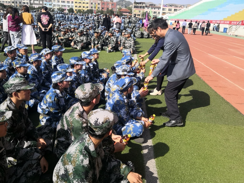 随后,学院老师向同学们发放了慰问品,并与同学们一起合唱了《歌唱祖国》,为同学们加油鼓劲,在场的参训新生用热烈的掌声感谢学院的诚挚关怀。同学们表示在今后的训练中会以更加饱满的热情完成军训任务,为今后的大学生活做好充分的准备,砥砺前进、奋斗不息。