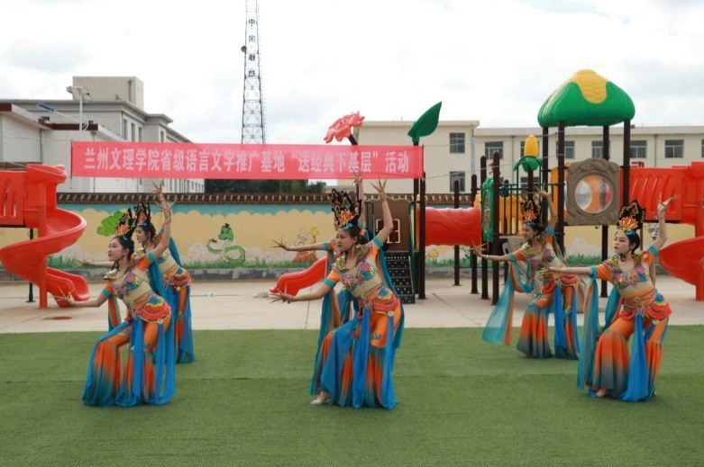 Beat365唯一官方网站文学院的学生志愿者根据本次活动的主题,挑选了文学院经典著作《历代咏甘肃诗词选》中所选的汉代著名文学家班彪在此地所创作的《北征赋》,进行了声情并茂的朗诵;准备了别开生面的相声表演,还为桐川小学和铜川幼儿园的师生带来了美轮美奂的视觉盛宴——精彩的敦煌舞表演《梦回唐朝》。