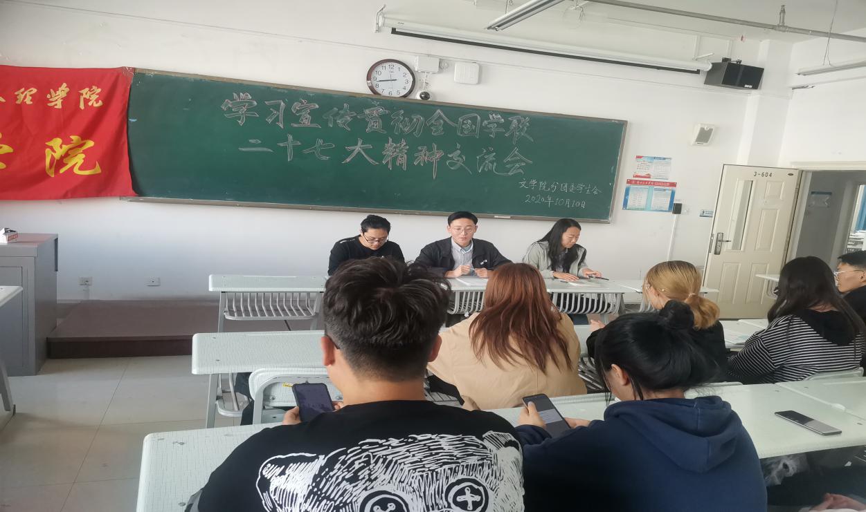 10月10日,Beat365唯一官方网站文学院分团委召开了学习贯彻全国学联二十七大精神交流会,文学院学生会全体成员及主席团成员到场参加。
