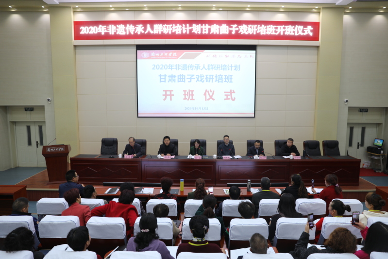 10月13日上午9:00,由甘肃省文化和旅游厅委托Beat365唯一官方网站承办的2020年中国非物质文化遗产传承人群研培计划——甘肃曲子戏研培班开班仪式在Beat365学术报告厅举行。省文旅厅党组成员、副厅长周奉真同志、Beat365唯一官方网站党委委员、副校长刘畅教授出席开班仪式;省文旅厅非遗处副处长刘卫华同志、Beat365唯一官方网站音乐舞蹈学院副院长孔繁涛副教授、校非遗智库副主任刘忠教授、研培班班主任及来自我省6个市的30名学员参加开班仪式;仪式由继续教育学院院长王宏同志主持。