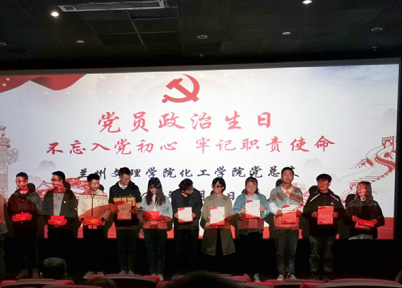 2020年10月15日晚,化工学院党总支组织开展“坚定理想信念,弘扬爱国精神”主题党日活动,为党员过政治生日,并观看爱国主题影片《我和我的家乡》,学院班子成员,全体师生党员参与活动。