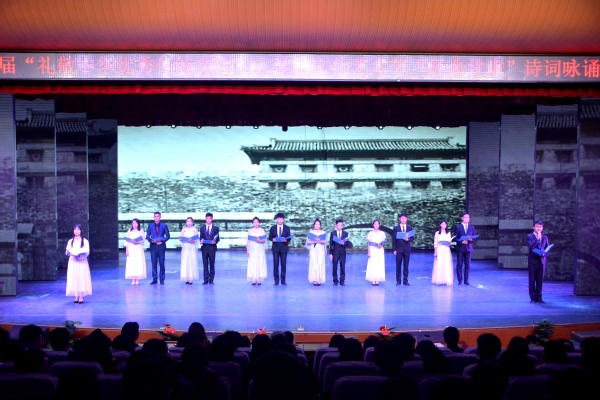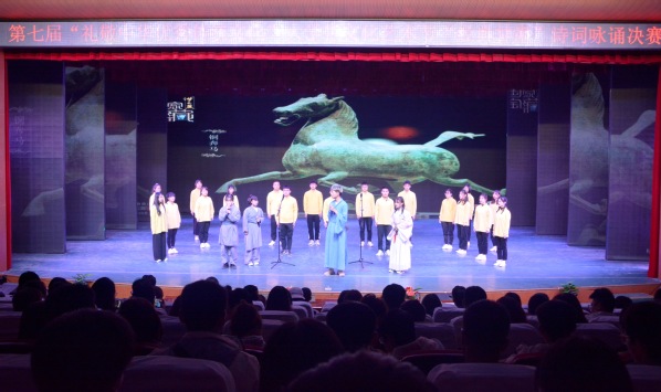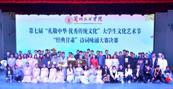 为弘扬中华优秀传统文化,讲好甘肃故事,坚定青年大学生的文化自信,10月18日晚,第七届“礼敬中华优秀传统文化”大学生文化艺术节“经典甘肃”诗词咏诵大赛决赛在实验剧场举行。文学院马得瑜、音乐舞蹈学院张丽华、艺术职业学院颜昭洁三位老师担任评委,校团委安婧、牛晓春及各二级学院学生代表400余人共同观看了比赛。