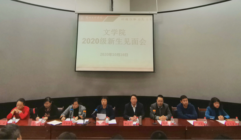 10月16日中午,文学院在5—401召开2020级新生见面会。出席此次见面会的有院长马晖、副书记副院长张彦荣、副院长叶淑媛以及综合办公室主任俞兴龙、教学科研办公室主任张春霓,各系系主任以及新生班主任、辅导员和2020级全体新生参加了见面会。