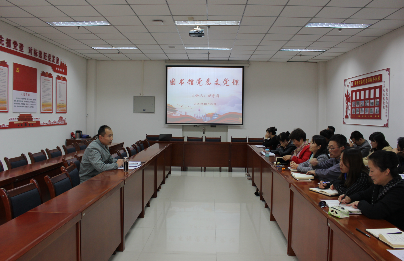 为了严明纪律、整治工作作风,11月2日下午,在图书馆九楼会议室,图书馆总支书记赵学森为图书馆全体工作人员上了一次主题为“严肃执纪 从严治党”的党课。