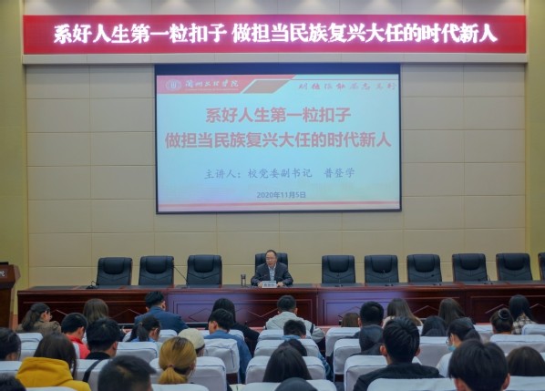 11月5日,校党委副书记普登学在学术报告厅以《系好人生第一粒扣子,做担当民族复兴大任的时代新人》为题,为全校专职团干部、青马学员、学生会及学生社团骨干上了一堂生动的思政课。