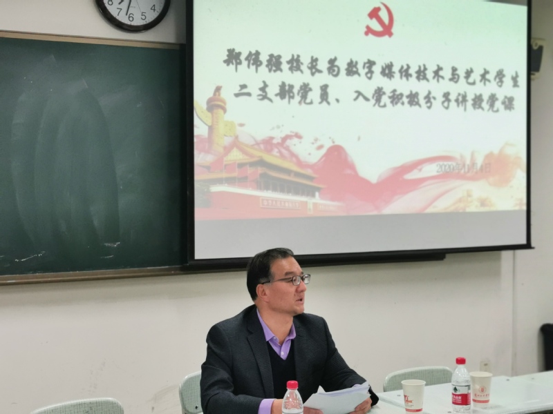 11月4日晚七点半,Beat365唯一官方网站党委副书记、校长郑伟强在教学楼2-408教室为数字媒体学院数字媒体技术与艺术学生二支部党员、入党积极分子讲授专题党课,党课由该支部书记任敏兄主持,数字媒体学院党总支书记陈小琴、支部党员及入党积极分子参加党课学习。